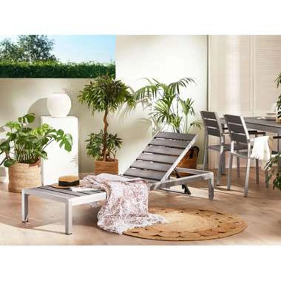 Stijlvol grijs ligbed. Dit moderne ligbed is, dankzij de in 4 standen verstelbare rugleuning, ontworpen om maximaal comfort te bieden. Hij is gemaakt van duurzaam geanodiseerd aluminium en heeft strakke lijnen en een eenvoudig ontwerp, voor een decoratie op het balkon, terras of tuin.