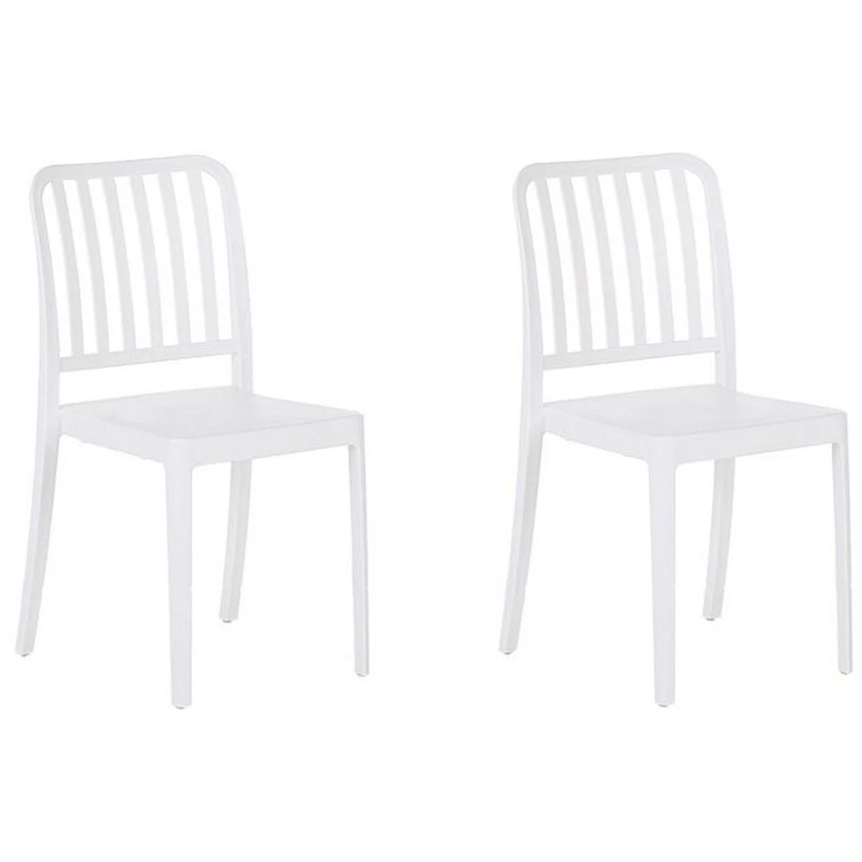 2 kunststof stoelen voor binnen- en buitengebruik. Maak je klaar om te genieten van de zon in een tuin of op een balkon met deze set stoelen. Ze zijn gemaakt van duurzaam plastic, waardoor ze gemakkelijk te verplaatsen zijn en een lentebui kunnen weerstaan. De stoelen zijn stapelbaar, dus het is geen probleem om ze voor de winter op te bergen. Als alternatief kunt u ze buiten het seizoen binnenshuis gebruiken. Dankzij de basic witte kleur en het minimalistische design is de set makkelijk in te delen in elke moderne ruimte.