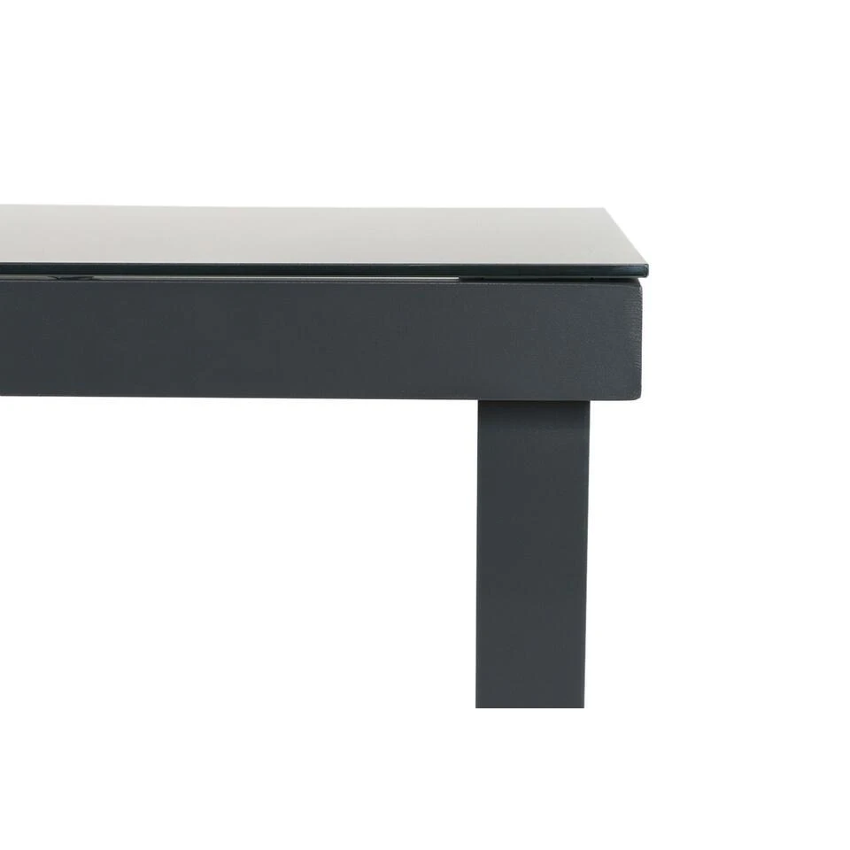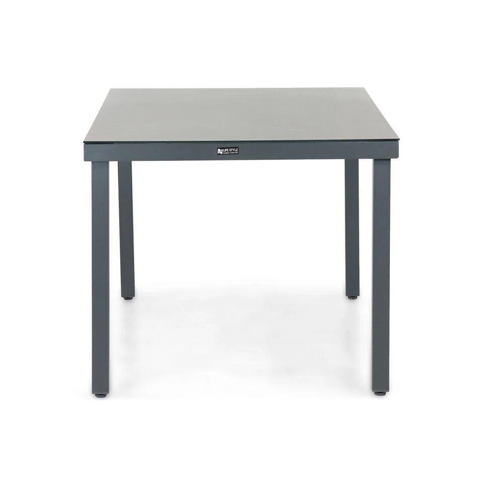 Lifestyle Porto dining tuintafel 160 x 90 cm De prachtige Lifestyle Porto dining tuintafel 160 x 90 cm is een stoere tuintafel binnen het assortiment van Tuinmeubelshop. De tuintafel is uitgevoerd met een aluminium frame en een glazen tafelblad. De Lifestyle Porto dining tuintafel is onderhoudsvrij en beschikbaar in 3 maten. Ben je benieuwd naar de Lifestyle Porto dining tuintafel? Neem dan een kijkje in één van onze megastores. Eigenschappen Lifestyle Porto dining tuintafel 160 x 90 cm De Lifestyle Porto dining tuintafel 160 x 90 cm is gemaakt van aluminium en glas. Het pootstel van de Lifestyle Porto dining tuintafel is gemaakt van antraciet-gepoedercoat aluminum. Poedercoaten is een elektrostatisch proces. Hierbij wordt de poeder op het aluminium aangebracht. Dit wordt verhit in een oven. Tijdens het uitharden worden de poederdeeltjes door de warmte eerst vloeibaar, vervolgens stroperig en tenslotte uitgehard tot een mooie, zeer duurzame coating op de tuintafel. Het tafelblad is gemaakt van gehard veiligheidsglas in de kleur antraciet. Je kunt de Lifestyle Porto dining tuintafel het gehele jaar buiten laten staan. In het voorjaar een vochtige doek eroverheen en genieten maar. De Lifestyle Porto dining tuintafel is ook beschikbaar in de maten 220 x 90 cm en 90 x 90 cm.