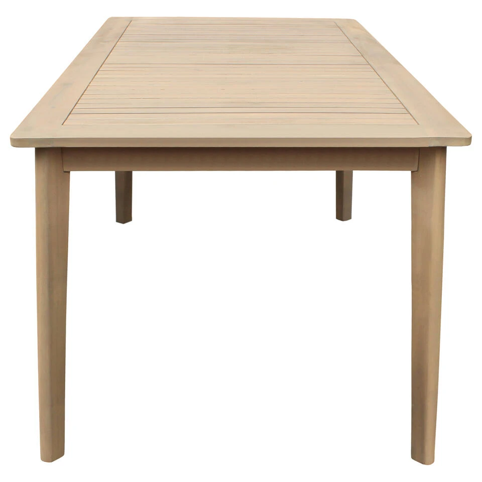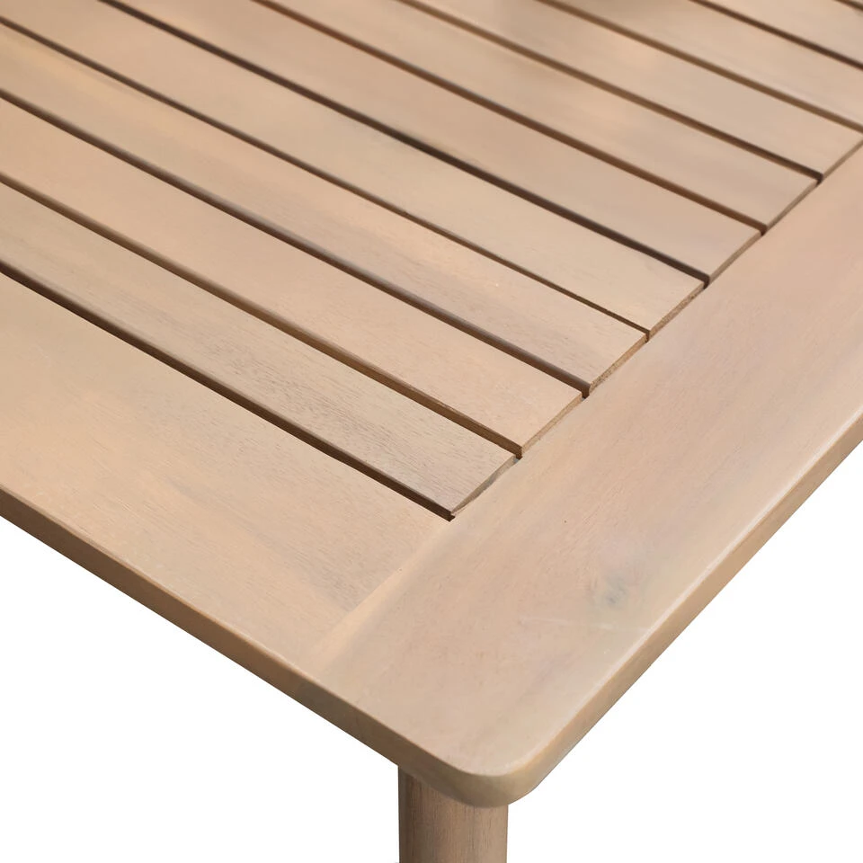 Deze houten tafel biedt plaats aan 6 personen om buiten te eten. Hij is stevig en aantrekkelijk, biedt een gezellig oppervlak en is gemakkelijk te monteren. Het natuurlijke ontwerp past perfect bij alle tuinstijlen.