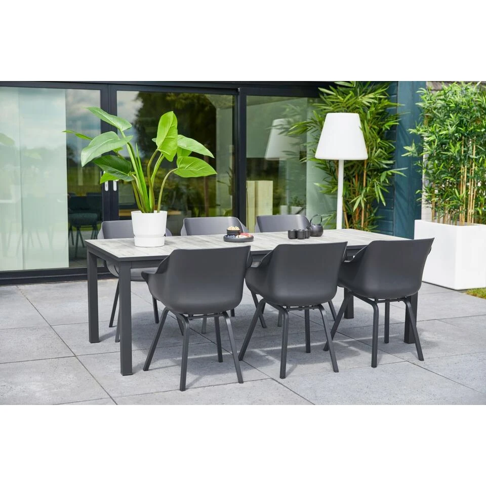 Deze tafel is gemaakt om lang mee te gaan. Hetaluminium frame is licht en roest niet, terwijl hetkeramische blad bestand is tegen dagelijks gebruikenverschillende weersomstandigheden. Schoonmaken is een fluitje van een cent, zodat je meer tijd hebt om te genieten. Met 2 jaar garantie is dit een betrouwbare keuze voor in je tuin.
