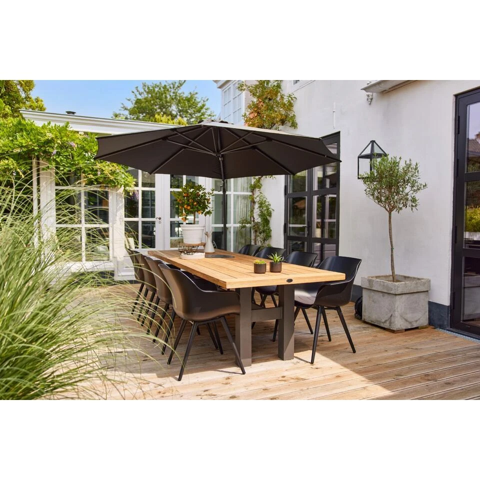 De Yasmani tuintafel van Hartman straalt tijdloze elegantie uit, waardoor het de perfecte aanvulling is voor jouw tuin. Met een royaal formaat van 240×100 cm biedt deze tafel voldoende ruimte om gezellig samen te komen. Het robuuste teakhouten tafelblad geeft een warme en natuurlijke uitstraling, terwijl het zwarte aluminium frame zorgt voor een modern contrast, waardoor de Yasmani tafel een echte blikvanger is in je tuin. Door de neutrale kleuren is deze tuintafel gemakkelijk te combineren met de meeste tuinstoelen. Bestellen van deze tuintafel kan direct online! Liever eerst even in het echt komen kijken? Kom dan langs in onze showroom in Opheusden, Duiven of Apeldoorn. Je bent van harte welkom!