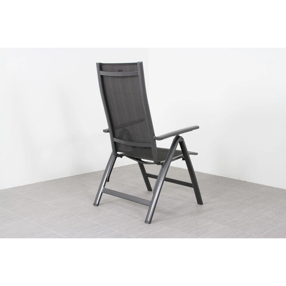 De verstelbare tuinstoel heeft een aluminium frame. De stoel heeft een textileen zit en rugleuning. De armleuning van de stoel is van aluminium. Door deze materialen te combineren heeft u een stevige maar ook een zeer mooie stoel. De stoel is te verstellen in meerder standen zodat hij perfect zit tijdens het eten maar dat u ook lekker in het zonnetje kunt gaan zitten met de rugleuning in de relax modus.