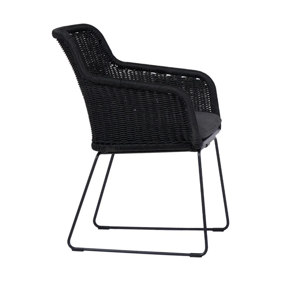 De Loki tuinstoel is gemaakt van polyrattan, een kunststof met de uitstraling van rotan, waardoor het tuinmeubel een bohemian uitstraling heeft en hij erg makkelijk in onderhoud is. Dankzij het comfortabele zitkussen is Loki een fijne stoel om in weg te zakken op een zonnige dag. Verkrijgbaar in zwart en naturel, zodat je altijd een kleur vindt die past bij jouw buitenruimte. Het meegeleverde zitkussen van 5 cm dik biedt extra comfort, perfect voor lange zomeravonden buiten.