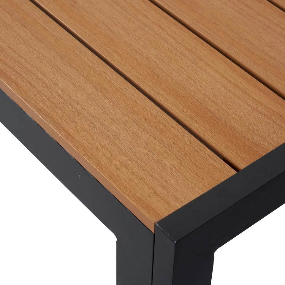 Met zijn lengte van 205 cm biedt Tibbe genoeg plek voor lange diners en gezellige avonden buiten. Het zwarte aluminium frame met poedercoating zorgt voor een robuuste en weerbestendige basis, terwijl het polywood tafelblad een warme houtlook toevoegt. Zo combineert Tibbe het beste van twee werelden: stoer én sfeervol.