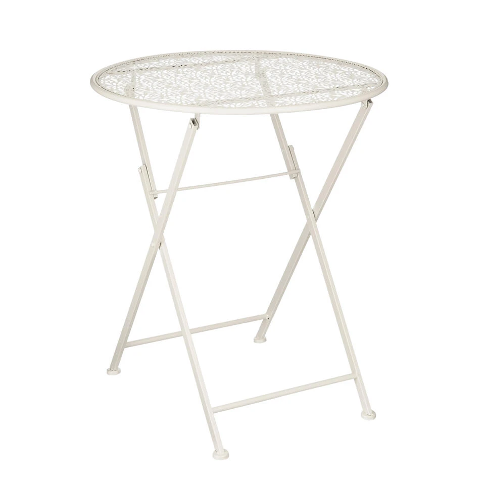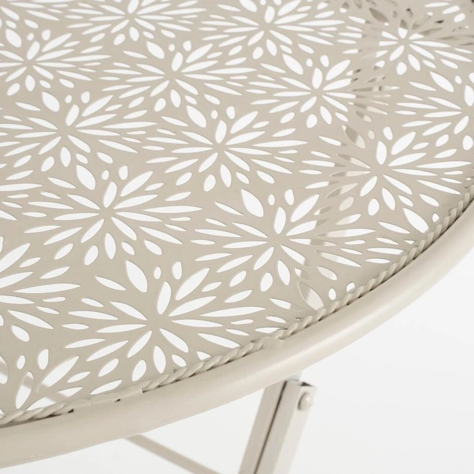 Creëer een romantisch zitje in de tuin met deze Tierra bistrotafel van Mica Decorations. De beige bistrotafel voor buiten is gemaakt van stevig metaal en valt op door het elegante design. In het ronde blad is namelijk een sierlijk motiefje verwerkt. De tafel is 70 cm hoog en heeft een diameter van 60 cm. Ook stijlvol om te combineren met bistrostoelen uit de Tierra collectie van Mica Decorations om er een complete set van te maken.