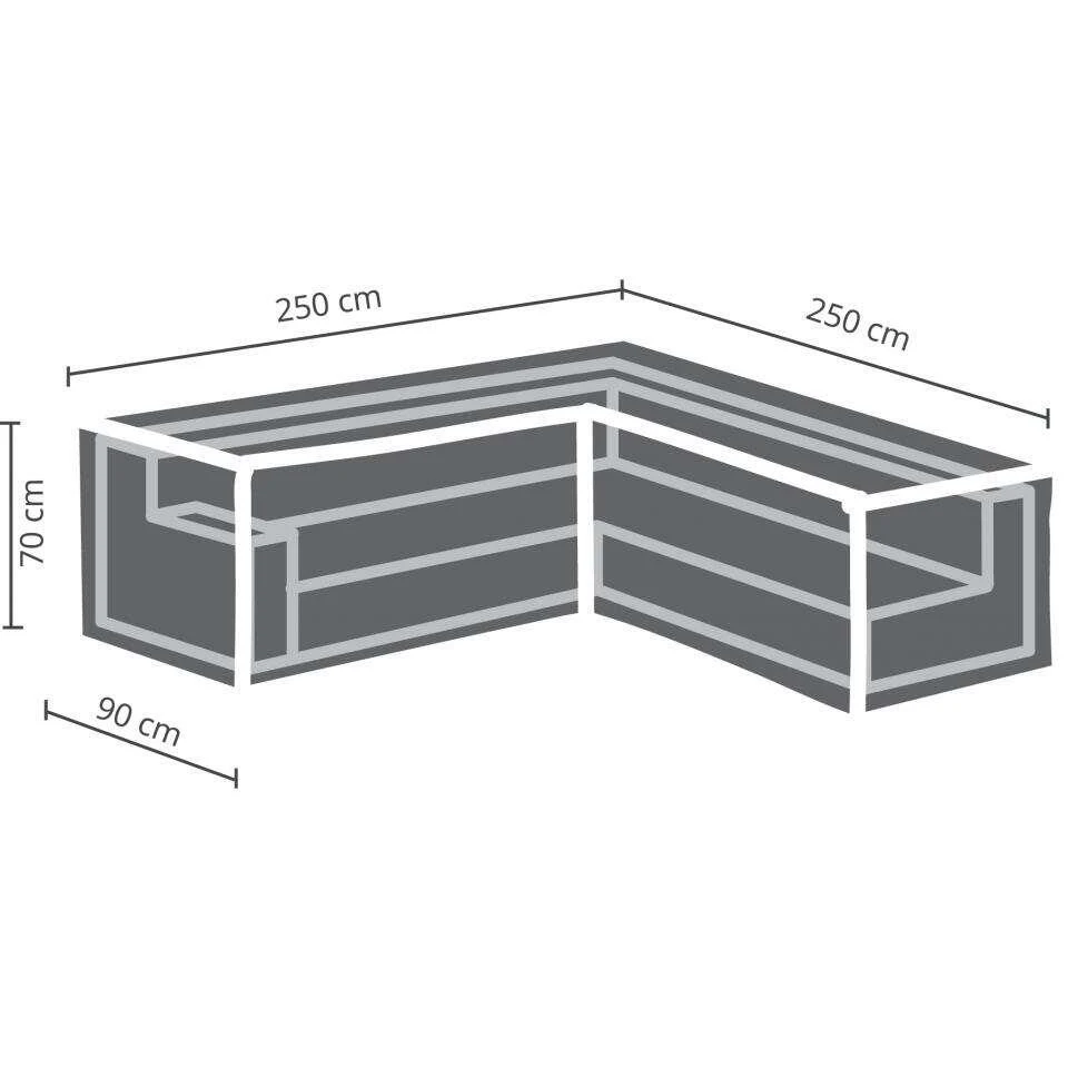 Deze Outdoor Covers hoes is geschikt voor een loungeset L-vormige bank van maximaal 250 cm.
