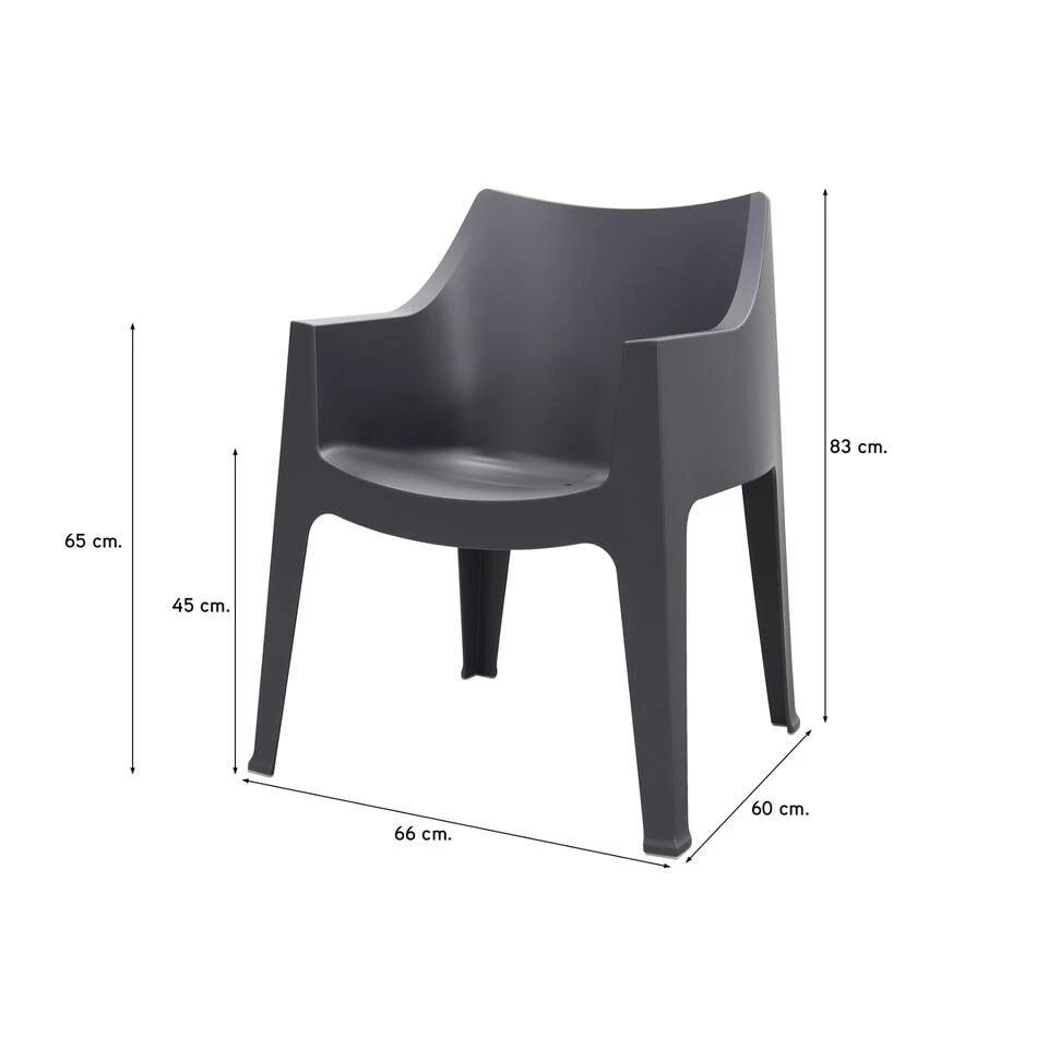 Het strakke design van de Scab Coccolona tuinstoel is volledig vervaardigd uit technopolymeer. Dit materiaal is een soort kunststof dat glad aanvoelt, niet snel verkleurd en makkelijk in onderhoud is. Dankzij de antislip poten blijft de Scab Coccolona stevig op zijn plaats staan. Ideaal als je de tuinstoel bijvoorbeeld bij een zwembad neer wilt zetten. In de zitting van de stoel zijn 2 gaatjes gemaakt zodat het water makkelijk weg kan lopen.