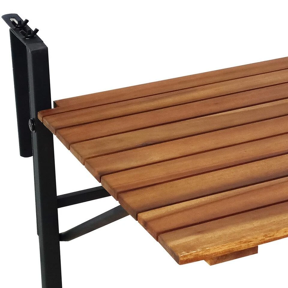 Deze balkontafel is voorzien van een zwart stalen frame en een acacia houten tafel. Je kunt de balkontafel voor buiten gemakkelijk verplaatsen, omdat deze licht in gewicht is. Wanneer jij graag buiten zit dan biedt deze balkontafel een ideale uitkomst!