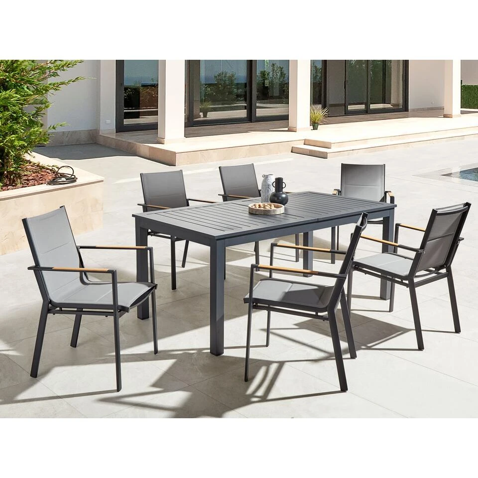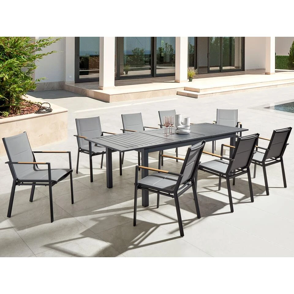 Belangrijkste eigenschappen: Perfect voor eten in grotere groepen, Hoogwaardig materiaal, Roestvrijstalen frame, UV-bestendigheidsklasse, Uitschuifbaar tafelblad voor extra plek