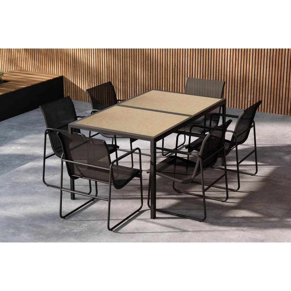 De Akira tuintafelset is vervaardigd met aandacht voor detail en duurzaamheid. Het robuuste frame en de hoogwaardige materialen zorgen voor een lange levensduur en onderhoudsgemak, zodat u seizoen na seizoen kunt genieten van comfort en stijl in uw buitenruimte. De combinatie van kleuren en materialen maakt deze set tot een echte blikvanger die moeiteloos aansluit bij diverse tuinstijlen.