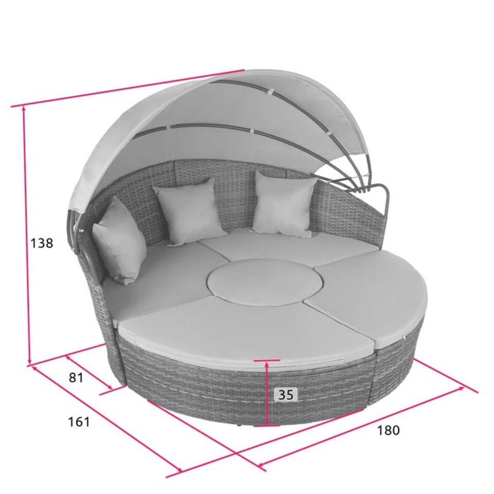 Hoogwaardig aluminium wicker zonne-eiland met opklapbaar zonnedak (door middel van twee gasveer-cilinders)