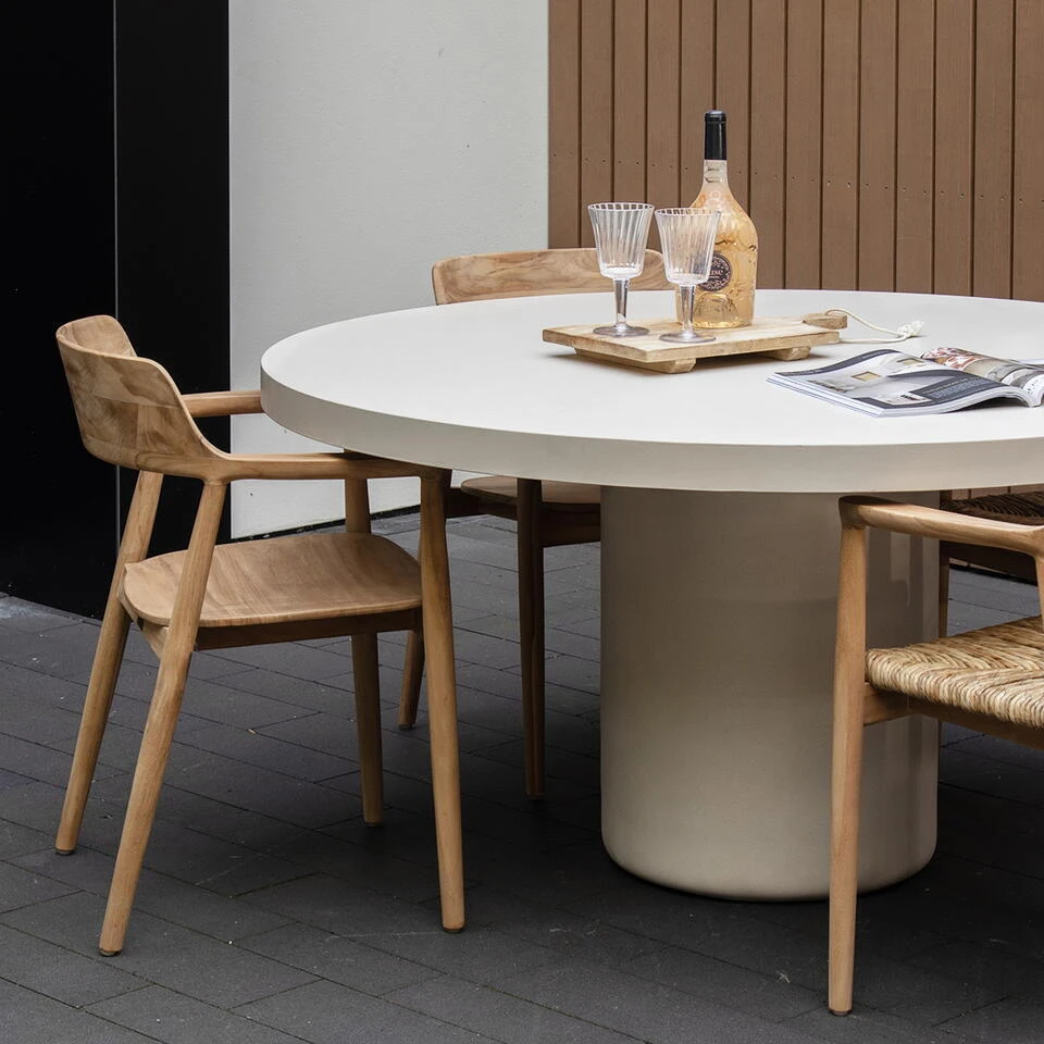 Ontdek de prachtige Tuintafel Eden Rond Beige van Giga Meubel, een perfecte aanvulling voor jouw buitenruimte. Deze tuintafel combineert de serene Japandi-stijl met de duurzaamheid van eco composiet materiaal. De beige kleur en de betonlook afwerking van het tafelblad zorgen voor een moderne en natuurlijke uitstraling. Ideaal voor gezellige etentjes in de tuin of op het terras, deze tafel biedt zowel stijl als functionaliteit.