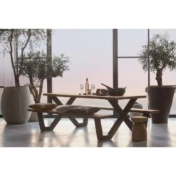 WOOOD Tablo Picknicktafel Met X-poot Buiten – Naturel – 75x206x145