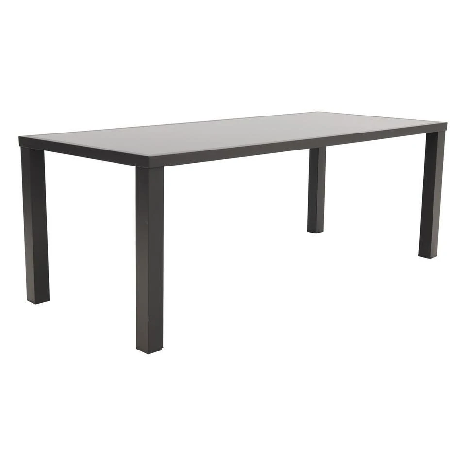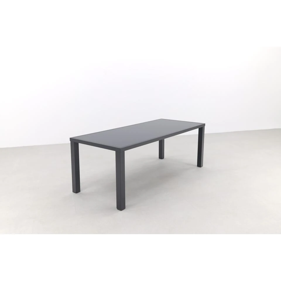 De Alma tuintafel heeft een aluminium frame welke afgewerkt is met een beschermende antracietkleurige poedercoating. Deze coating zorgt ervoor dat het frame kras- en stootvast is. Aluminium is een veelgebruikt materiaalsoort in de tuinmeubelindustrie. Dit materiaal heeft namelijk een lange levensduur, kan niet verroesten en heeft weinig onderhoud nodig. Onder elke tafelpoot zit een verstelbaar dopje zodat je de tuintafel waterpas af kunt stellen. Het tafelblad van de Alma is gemaakt van “spray on glass” veiligheidsglas welke afgewerkt is met een speciale beschermlaag.