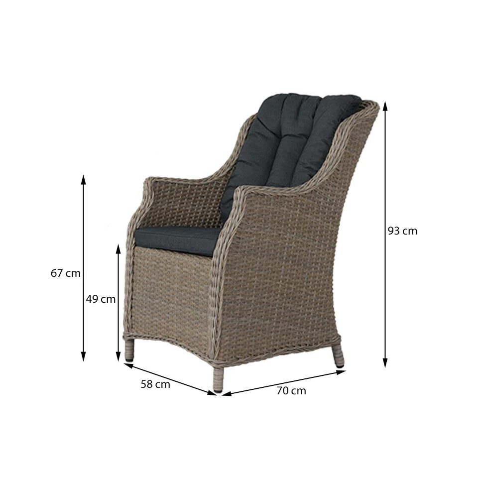 De King dining wicker tuinstoel is uitgevoerd in een zand kleurig wicker. Kenmerkend aan deze wicker tuinstoel is het zitcomfort. Door de hoge rugleuning heb je extra veel steun in de rug.