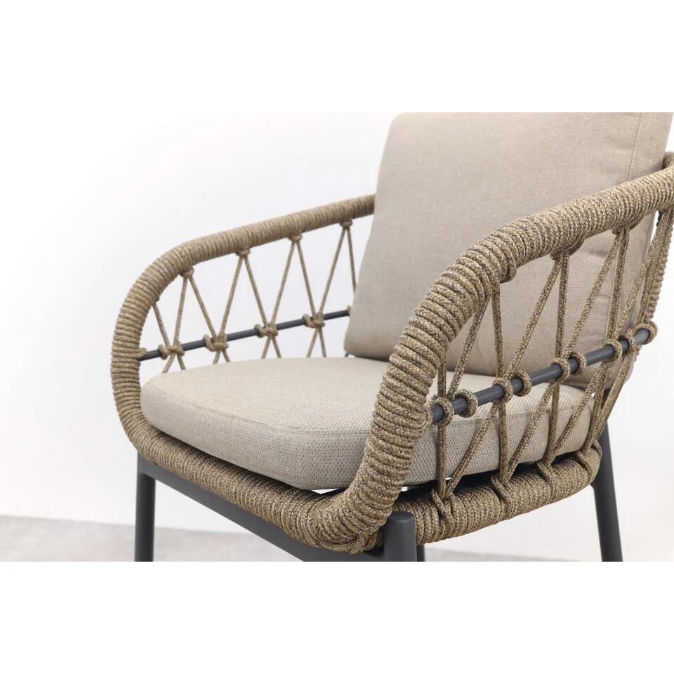 De Julia tuinstoel is vervaardigd met oog voor duurzaamheid en kwaliteit. Het stevige frame, gemaakt van hoogwaardig aluminium, biedt niet alleen een solide basis, maar is ook bestand tegen alle weersomstandigheden, waardoor de stoel het hele jaar door buiten kan blijven staan. De elegante afwerking met rope geeft de stoel niet alleen een stijlvolle uitstraling, maar zorgt ook voor een comfortabele zitervaring. Bovendien worden de Julia tuinstoelen geleverd met zachte kussens voor zowel de zitting als de rugleuning, waardoor je kunt genieten van urenlang comfort, of je nu ontspant met een goed boek of geniet van een gezellige barbecue met vrienden en familie.