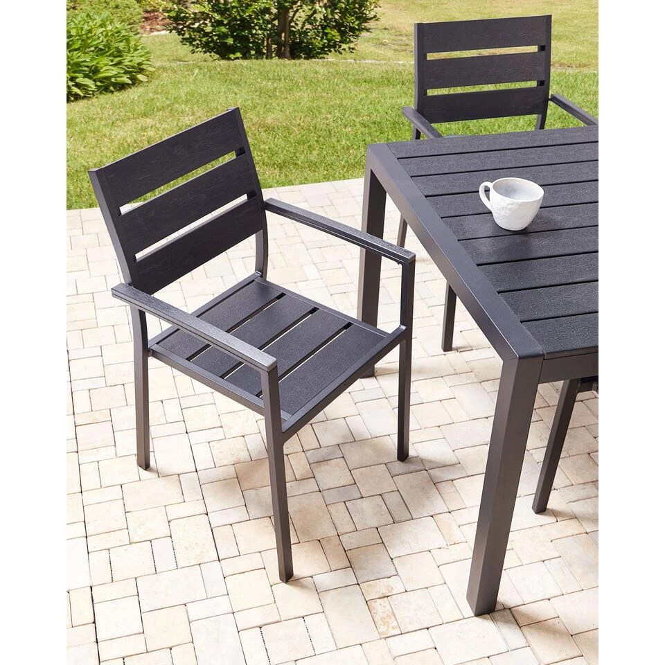 Belangrijkste eigenschappen: Modern terras- en tuinmeubilair, Tijdloos design, Geschikt voor binnen- en buitengebruik, Onderhoudsvriendelijk en duurzaam materiaal, Plaatsbesparend stapelbaar, Beschermdoppen voor oppervlaktebescherming