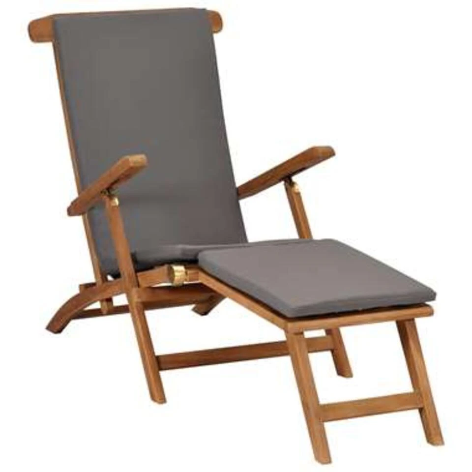 VidaXL Ligstoel Met Kussen Massief Teakhout Donkergrijs