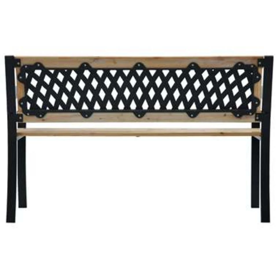 De bank is gemaakt van massief hout en hoogwaardig staal waardoor hij weerbestendig en zeer duurzaam is. Met een kunststof rugleuning met ruitpatroon is hij een echte blikvanger en de perfecte keuze voor je tuin of terras. De buitenbank is ook een perfecte aanvulling op de entree van je huis.