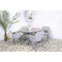 - Materiaal: PE-rattan, gepoedercoat staal en gehard glas
