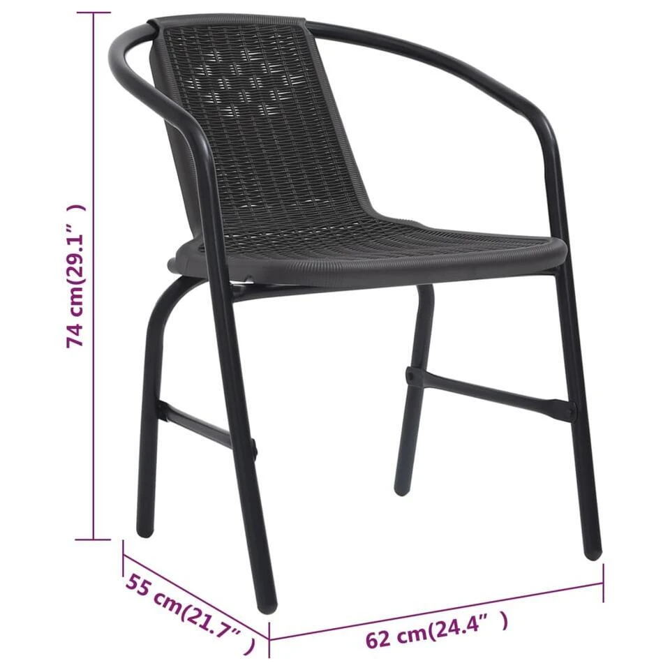 - Comfortabel zitten: deze stoelen zijn gemaakt van kunststof rattan, dat bijdraagt aan het zitcomfort.