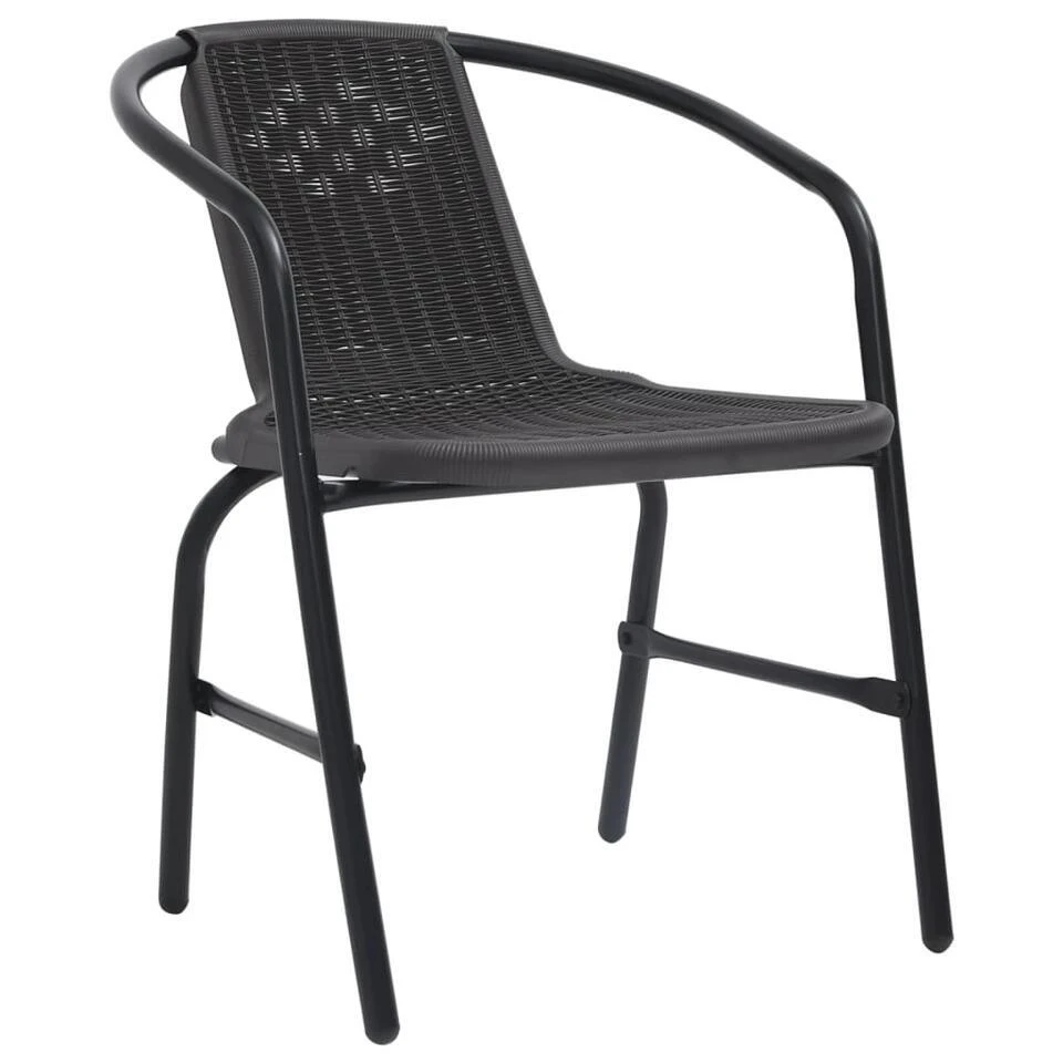 Deze tuinstoelenset met rattan-look is geschikt om op te eten of om in de buitenlucht te relaxen.