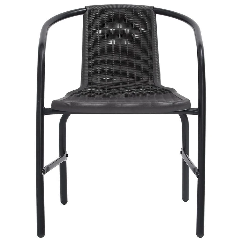 Deze tuinstoelenset met rattan-look is geschikt om op te eten of om in de buitenlucht te relaxen.