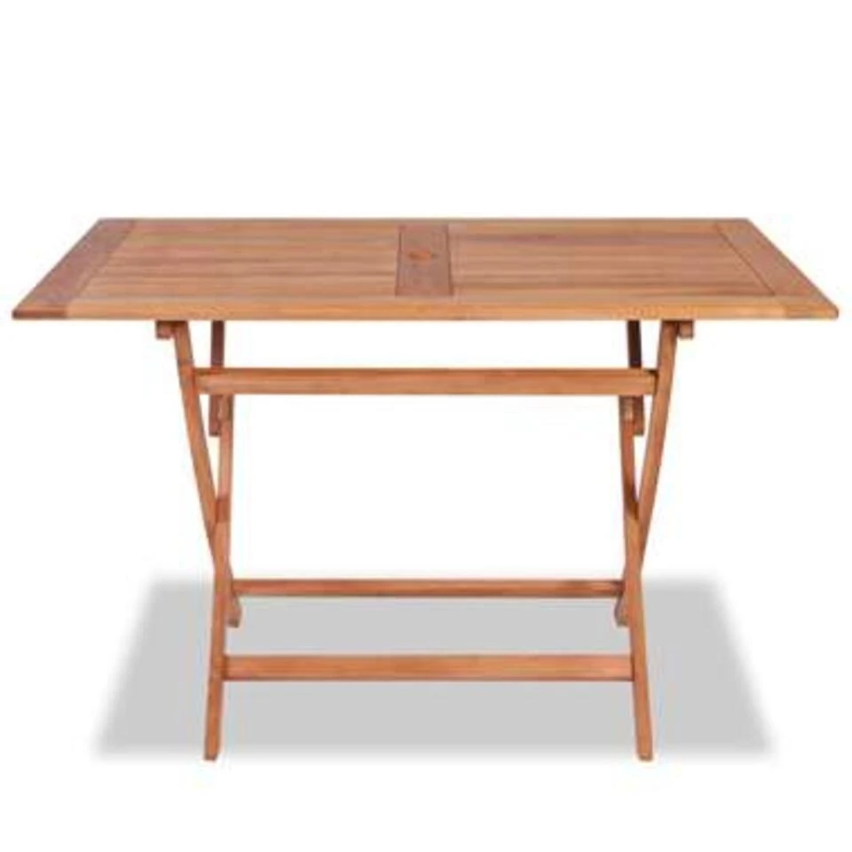 Daarnaast is er een prachtige afwerking op waterbasis toegepast om het hout een warme kleur te geven. Dankzij het unieke ontwerp kan de parasol in het midden van de tafel worden gemonteerd om bescherming tegen de zon te bieden. Bovendien kan de tafel gemakkelijk worden ingeklapt om ruimte te besparen als hij niet in gebruik is. Deze tafel kan je overal in je buitenruimte plaatsen dankzij zijn waterbestendigheid en klassieke uitstraling. Onze tuintafel is eenvoudig te monteren.